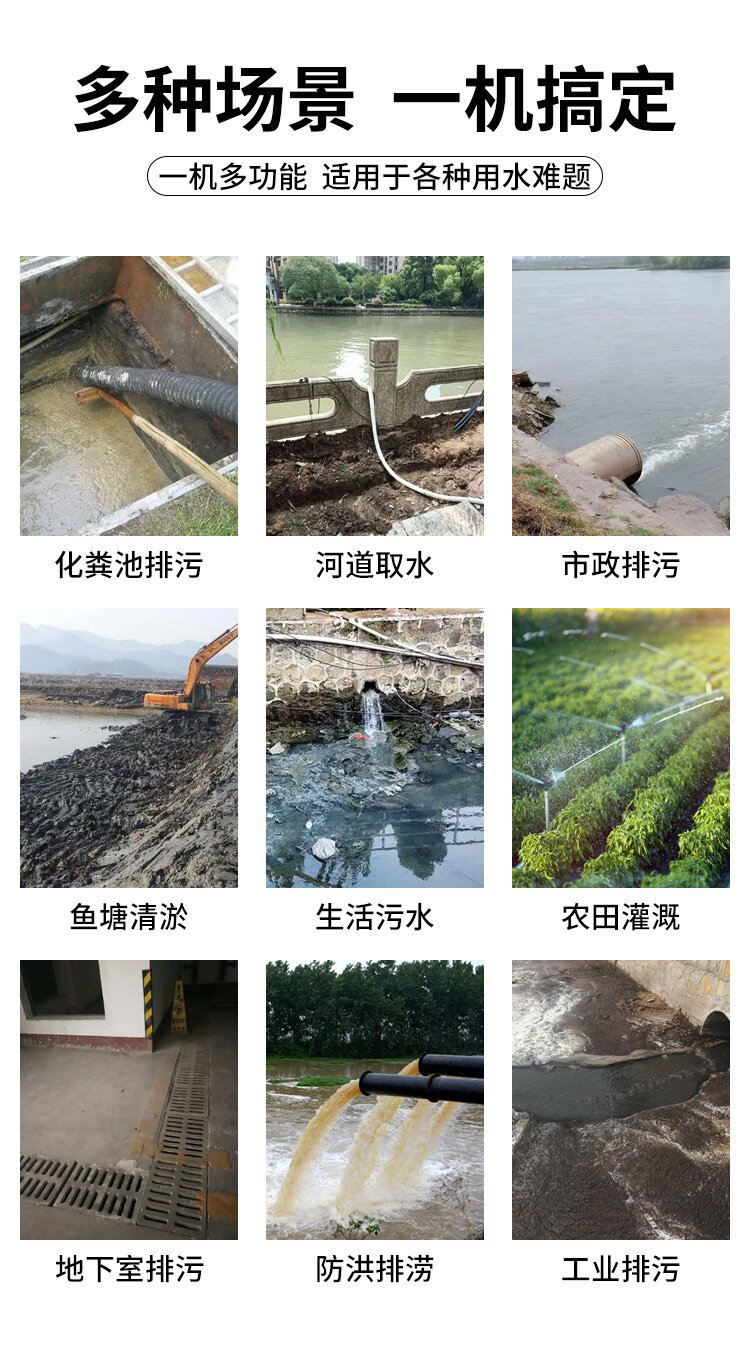 工廠、商業(yè)污水排放、鍋爐給水和冷凝系統(tǒng)、建筑工地、人防系統(tǒng)排水站、市政排污工程、雨水排放